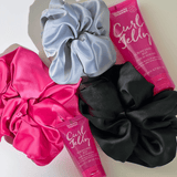Stylish XXL Pillow Scrunchie cocoons hair in a vegan silk cushion, helping to prevent snagging and pulling.